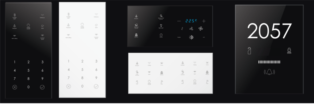Premium glass touch panels with project-specific finishing, elegant feedback, and intelligent sensing.